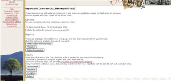 won't find duplicate links, and you won't find the ability to print out family